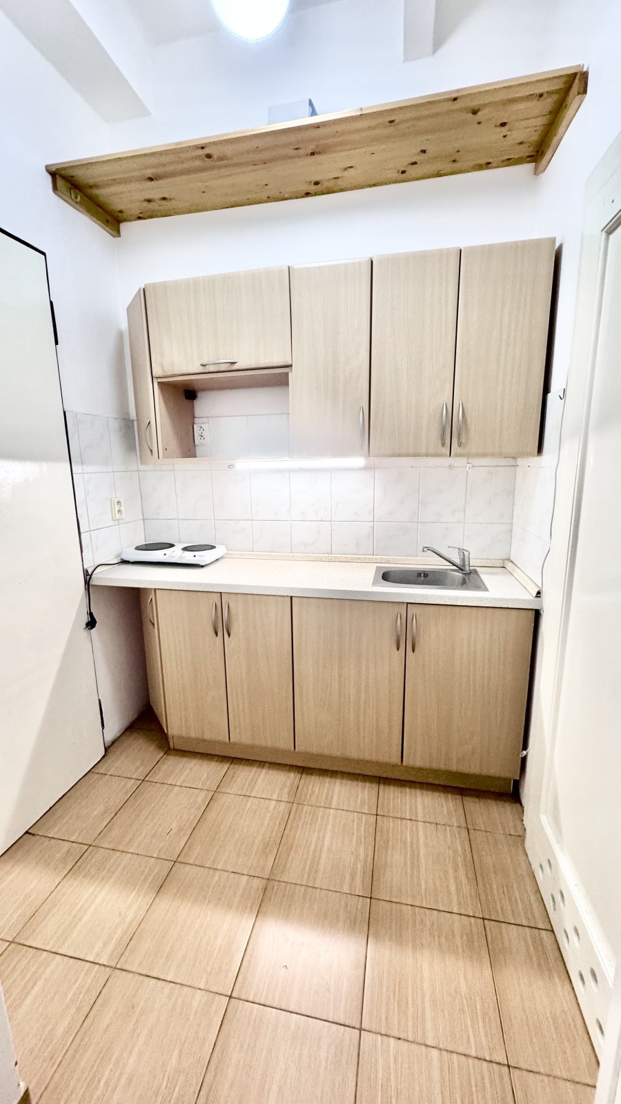 Pronajmu hezký byt po rekonstrukci v pátém nadzemním podlaží domu s výtahem,v bytě je prostorný pokoj s oknem do zahrady,komora,předsíňka s kuchyňským koutem, koupelna s vanou a toaleta,ve vybavení bytu je kuchyňská linka s nerezovým dřezem,dvouplotýnkový vařič,pračka,plastová okna,osvětlení,na podlahách dlažba a plovoucí podlaha,internet přes kabel, topení elektrické a ohřev teplé vody přes bojler,MHD přímo u stanice metra trasa C Palmovka,tramvaje,autobusu,